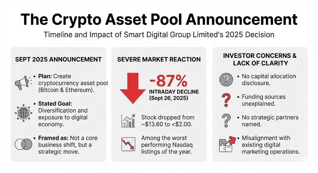 - Smart Digital Group Limited stock fell nearly 88 percent in one trading session in September 2025